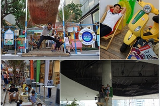在五樓空中花園設計了SUMMER BEACH CAMP夏令營的叢林探險活動
