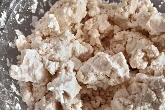 步驟 1:糯米粉加入150cc的水揉成顆粒狀