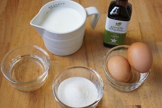 步驟 6:把蛋打散動作盡可能輕巧,避免打入過多空氣,影響口感,將蛋液香草精加入步驟五放涼的牛奶液中拌勻