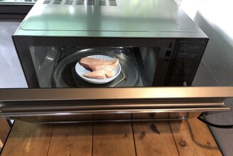 步驟 1:利用微波爐將冷凍雞胸肉解凍完成。