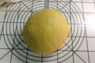 步驟 3:作業台上撒一點手粉,開始桿麵,從中間向上下左右桿開,桿到底把泡泡桿出來。要正反面都要桿到。