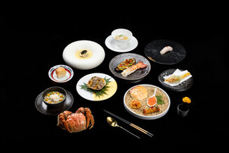 辰壽司割烹今年所推出的大閘蟹盛宴除了大閘蟹之外,也採用日本北海道法國與義大利等地的頂級食材,包含紫海膽新鮮松露魚子醬大角蝦鮪魚大腹鱈魚白子等,製作出大閘蟹塔大閘蟹肉玉米湯大閘蟹膏手捲大閘蟹素麵,以及烏賊握壽司北海道牡丹蝦握壽司日本秋刀魚握壽司大閘蟹棒壽司日本黑鮪大腹握壽司與日本黑鮪赤身醬油漬握壽司等精緻菜色。