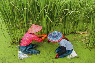 ▲茭白筍的世界宛如小小叢林,一整個奇幻無比,春天快來到了,下水一起採茭白筍吧!