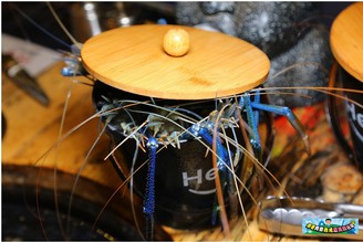 ▲肉魯特地在水道裡抓了幾隻巨無霸尺寸的泰國蝦,泰國蝦腳外露在冰鎮桶外一整個霸氣十足。
