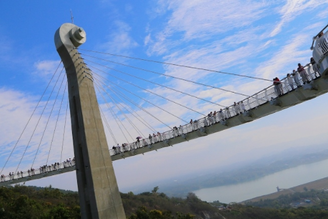 ▲這幾年台灣各地出現了各種玻璃橋寄望帶動觀光,老實說崗山之眼與其他吊橋設計有一點不同,崗山之眼有一種天空觀景台的概念,真的是很美哩。
