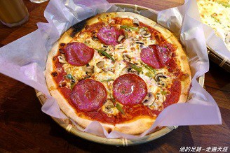 酥脆的披薩餅皮真的超好吃,因為比較薄所以更能感受到番茄醬汁和起司的完美結合,而鹹香的美式臘腸讓披薩更美味了。