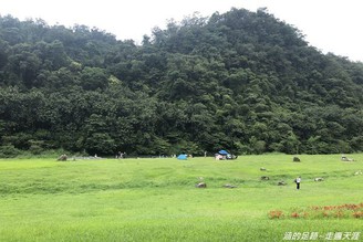 停車場旁是大片綠油油的草地,很多人在這裡野餐休憩,讓小朋友在這裡跑跳。