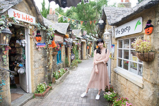 湯布院花卉村街道上佈滿萬聖節的氣氛