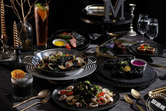 「黑色搖滾套餐」包含一整套從小食、主餐、甜點、飲品的豐富餐點:前菜是以墨魚醬酥炸雞腿肉,搭配酸甜火龍果沾醬的「BLACKPINK炸雞組合」;主餐可選擇米飯吸飽海鮮高湯和墨魚醬汁,並加入墨魚香腸、透抽和蛤蜊,讓鮮上加鮮的「黑潮搖滾宇宙燉飯」,或是選擇醬汁洋溢檸檬葉、香茅的泰式香氣,大海鮮味隨墨魚麵條如海浪般襲來的「黑浪花海鮮義大利麵」;甜點提供可麗露、葡萄塔、巧克力冰淇淋三種選擇;另外,凡點黑色搖滾套餐享半價加購微醺特調「發光黑爵士」或「搖滾黑玫瑰」,前者發想自經典調酒「自由古巴」,清新果香讓人身心輕鬆,後者的玫瑰氣息揉和杏仁、柑橘與黑色蘭姆酒的熱帶果香,散發獨一無二的反差魅力。
