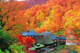 身為日本知名的秘湯之一,乳頭溫泉鄉雖然隱身於秋田縣山間,交通上卻不難抵達。不論從東京,或是仙台盛岡出發,都可以搭乘秋田新幹線至田澤湖站下車後再轉乘巴士約45分即可抵達。乳頭溫泉鄉由六座溫泉所組成,除了是日本東北首屈一指的溫泉地,這裡也是有名的楓紅勝地。每年10月上旬至下旬,可以看到大片的山林被染紅的絕美景色。此外,乳頭溫泉鄉的溫泉旅館皆有露天溫泉設施,可以一邊泡湯,一邊欣賞被楓紅圍繞的美景,如此奢華的享受每年秋季都吸引了大批遊客慕名而來。