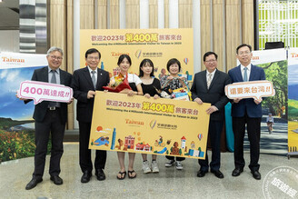 交通部觀光局自2011年起,歷經12年將於9月15日正式升格為交通部觀光署,於升格前夕,於昨(13)日於松山機場,迎接來自韓國的第400萬名幸運旅客金睿元小姐(Kim Yewon),是繼7月21日迎接第300萬人次後,僅相隔53天就達到400萬人次,較先前每成長百萬人次的時間又再縮短,顯見臺灣入境市場穩健復甦,而今年設定為600萬來臺人次目標。