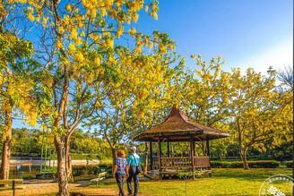 每年5月下旬開始至6月上旬,阿勃勒盛開綻放成整片的黃金花海,引人入勝,而說到黃金雨阿勃勒,首當其衝當然想到台南,阿勃勒花季是臺南重要的賞花遊程,其中新化的虎頭埤風景區是最具代表性的阿勃勒賞花勝地,花季期間每週末皆有音樂演出,讓大家可以遊湖賞花聆聽樂音,享受每年一度的黃金花雨以及湖光山色的虎頭埤美景。除了虎頭埤外,台南還有許多地方也都能欣賞到黃金雨的美景!