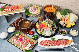 除了備好湯底,食材也一樣講究,主食提供油花分佈細緻的極上無骨牛小排有著豬肉中的貴族之稱的西班牙伊比利豬肉質軟嫩中富有彈性的桂丁土雞肉汁豐富且清香的紐西蘭小羔羊肩以及鮮味之極的特選海鮮總匯,嚴選八款每日新鮮直送的海鮮,直接滿足海鮮控的味蕾。每鍋價格為780元10%起。而值得一提的是餐檯還設置蔬食自助吧,再加碼提供幸福甜點櫃,消費者可以蔬食甜點無限吃到飽。