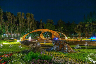 一大門口:可以看見熊熊遇見鹿,透過蒲公英燈,穿插在美麗花卉底下,白天自然襯出花卉的美麗,夜晚燈光發亮,還能烘托出動物展件獨特魅力。