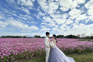 后里環保公園台中市建設局所種植的大波斯菊花海,目前第一批已盛開,白色粉紅色及紫紅色等繽紛花色現在花開正美,展現浪漫唯美的風景,花海訊息一出已吸引到新人前來拍照取景,因園內花海為分區綻放,故花海將接力盛開至春節假期,而且園內還設置應景的藝術裝置,民眾可利用拍照打卡。
