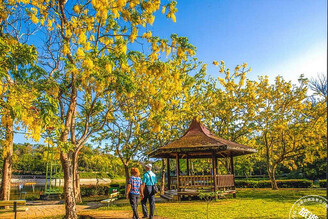 阿勃勒的花朵因為鮮黃亮麗,花瓣隨風飄逸而下彷彿華麗的黃金地毯,每年都吸引成千上萬遊客前來虎頭埤賞花健走露營烤肉野餐及從事水域遊憩活動。今年特別聘請專業的運動教練,帶領大家走出健身房,一邊享受大自然的清新空氣,一邊從暖身操健走,再到學習正確的超慢跑運動,讓大家都能享受於初夏的浪漫黃金花雨中揮汗的快感。