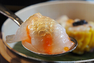 懷舊灌湯餃更是經典之作,豐彈緊緻麵皮,精細掌握外皮的厚薄度,內餡包入以金華火腿瑤柱與雞爪等費時4小時熬製而成的濃醇湯底,冷凝成湯凍結合豬肉帶子蟹肉,並添以花膠的黏潤膠質,置於傳統鐵片上蒸製4分半鐘,確保內裡化作鮮潤湯汁而不穿皮,蒸透的餅皮彈嫩透光,不僅復刻港式經典湯餃的美味香氣,湯汁更是汁鮮味美。