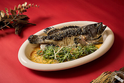 黑金蒜醬龍虎斑加入黑蒜話梅與風乾大地魚提升蒜香層次,售價1,880元。圖台北新板希爾頓酒店提供