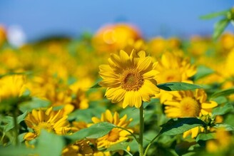 今年大佳河濱花海種植的是 光陽品種和莫內品種,目前5萬盆光陽品種向日葵已全數盛開,占地約1300 平方公尺的花海,金黃燦爛在陽光下隨風搖曳,而莫內品種向日葵波斯菊和太陽麻等高大的花種,將陸續盛開到11月底,為臺北市民帶來不間斷的花朵饗宴。另外,現場大型的南瓜雕塑,也呼應即將來臨的萬聖節,讓大家打卡拍照更有亮點