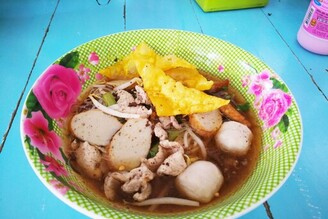 米粉湯幾乎是泰國國民美食的最佳代表了,相傳米粉湯的發源地是水上市場,船上煮出來的米粉湯可道地了,簡單的大鍋湯頭搭上配料米粉,不知滿足了多少味蕾。米粉只是這國民美食的代名詞,因為除了有分粗細的米粉外,還有麵稞條米線或泡麵都有,這些都統稱為米粉湯。湯底大部分是大骨熬湯,香醇濃郁加上油蔥及各種配料,每個攤子的食材都太不一樣Ex.牛肉片豬肉片魚片肉丸魚丸雞絲豬皮..等等,最後再加上四大天王的調味料,好吃到爆!