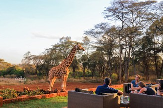 午餐過後的時間,可以選擇回房間休息、或是就近去參觀旁邊的長頸鹿中心(Giraffe Center)。約莫到了四點半,工作人員會開始為下午茶時段做準備,可以看到一樓客廳的櫃子上擺滿了各種酒類,外面的休息區也有提供輕食,但是跟長頸鹿玩都來不及了,哪有時間吃東西呢~~~所以食物的部份我們完全沒拿...酒倒是喝了不少XD