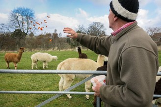 2014年4月的蘇格蘭高地依舊冷冽,我們一早即開車從尼斯湖(Loch Ness)旁的Drumnadrochit前往位於Inveness北方不遠的Alpaca牧場。前一晚罕見(當地人說的)突然的供電異常使得整個北蘇格蘭都受到影響,停了好幾個小時的電。沒了暖氣,來自南國的我們只能躲在B&B裡下西洋棋(儘管冷但其實還挺愜意的),但卻影響了我們與Robbie和Shirley的email聯繫,溝通前往拜訪的時間…