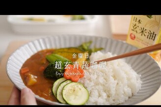蔬食當道正流行其實咖哩無肉也很好吃,太太為了儘可能呈現食材原味,蔬菜只加入玄米油胡椒鹽巴簡單調味,日本玄米油的發煙點220度 適用各種高溫烹調料理,利用烘烤去掉蔬菜中的水分,突顯出各種蔬菜原味的鮮甜,再配上鹹香的咖哩醬汁,讓白飯變得超好吃 而且我發現用玄米油烤出來的蔬菜,不會有油耗味,吃起來很清爽,我很喜歡!,